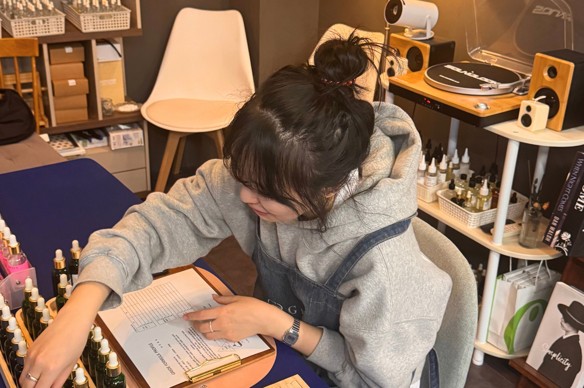 효서는 말합니다. “감정적 결핍은 감당하기 어려울 때 무의식 속으로 밀려나요. 저는 그 결핍을 그림으로 꺼내고 싶어요.” 그래서 그녀는 저를 택했습니다. 향과 그림이 만나면, 사람들의 무의식 속 결핍을 부드럽게 끌어낼 수 있다고 믿었거든요