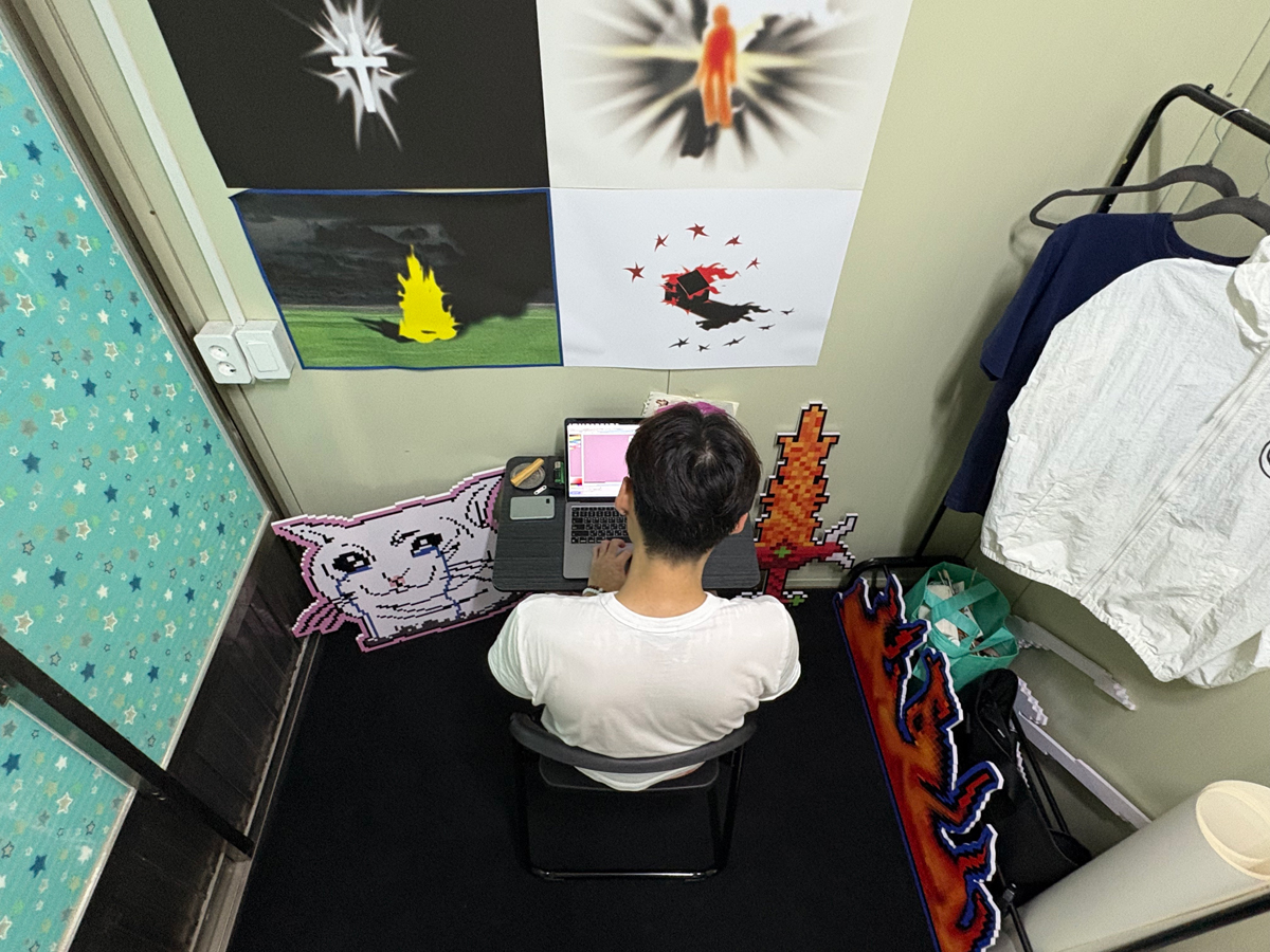 ![]() 이번 전시는 그가 겪어온 불안과 모호함의 기록이자, 같은 자리에 서 있는 이들을 향한 작은 수신호입니다. "명확하지는 않지만 분명히 존재하는 신호 같은 거예요." 픽셀처럼 멀리서는 형태가 잡히지만 가까이서는 흔들리고, 신호 같지만 읽히지 않는 것. 그는 그것이 곧 지금의 자신이라고 이야기합니다.