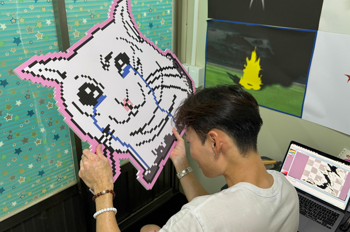 ![]() 작품 속 작은 픽셀들은 가까이에서 보면 흩어진 조각이지만, 멀리서 보면 하나의 그림을 완성이 되죠. 그는 이렇게 시야에 따라 달라지는 픽셀의 특성에서 자신의 모습을 발견했어요. 그 작은 조각들은 그의 삶을 다시 써내려가는 언어가 되었고, 불안한 정체성을 드러내는 창이 된 것이죠.
